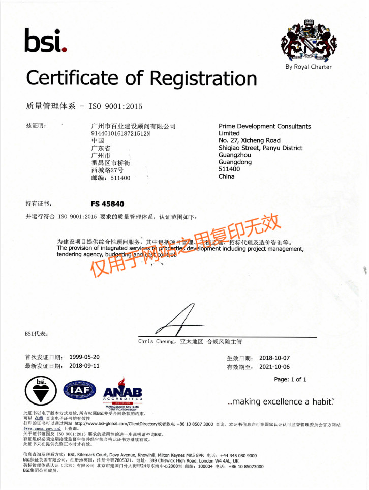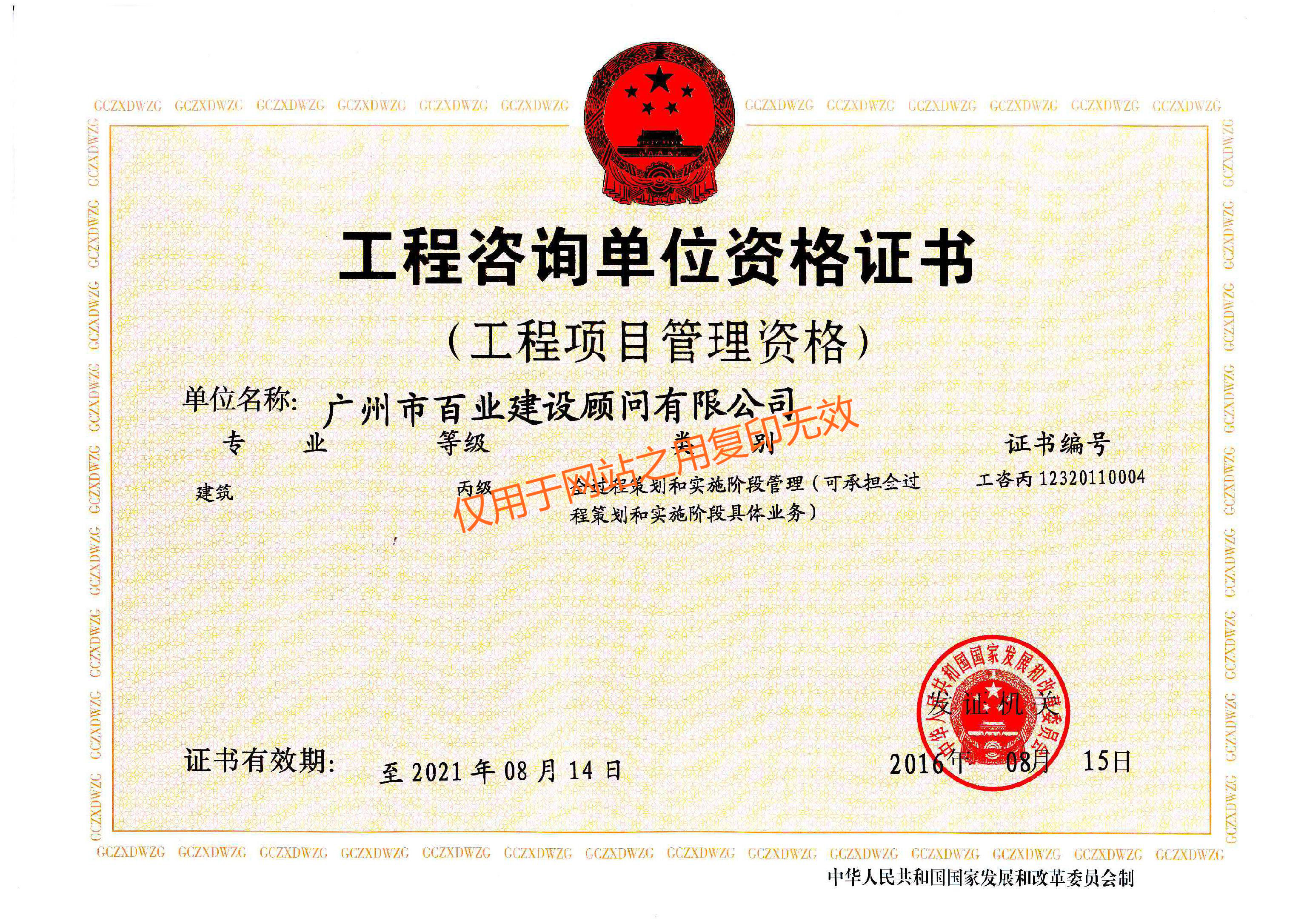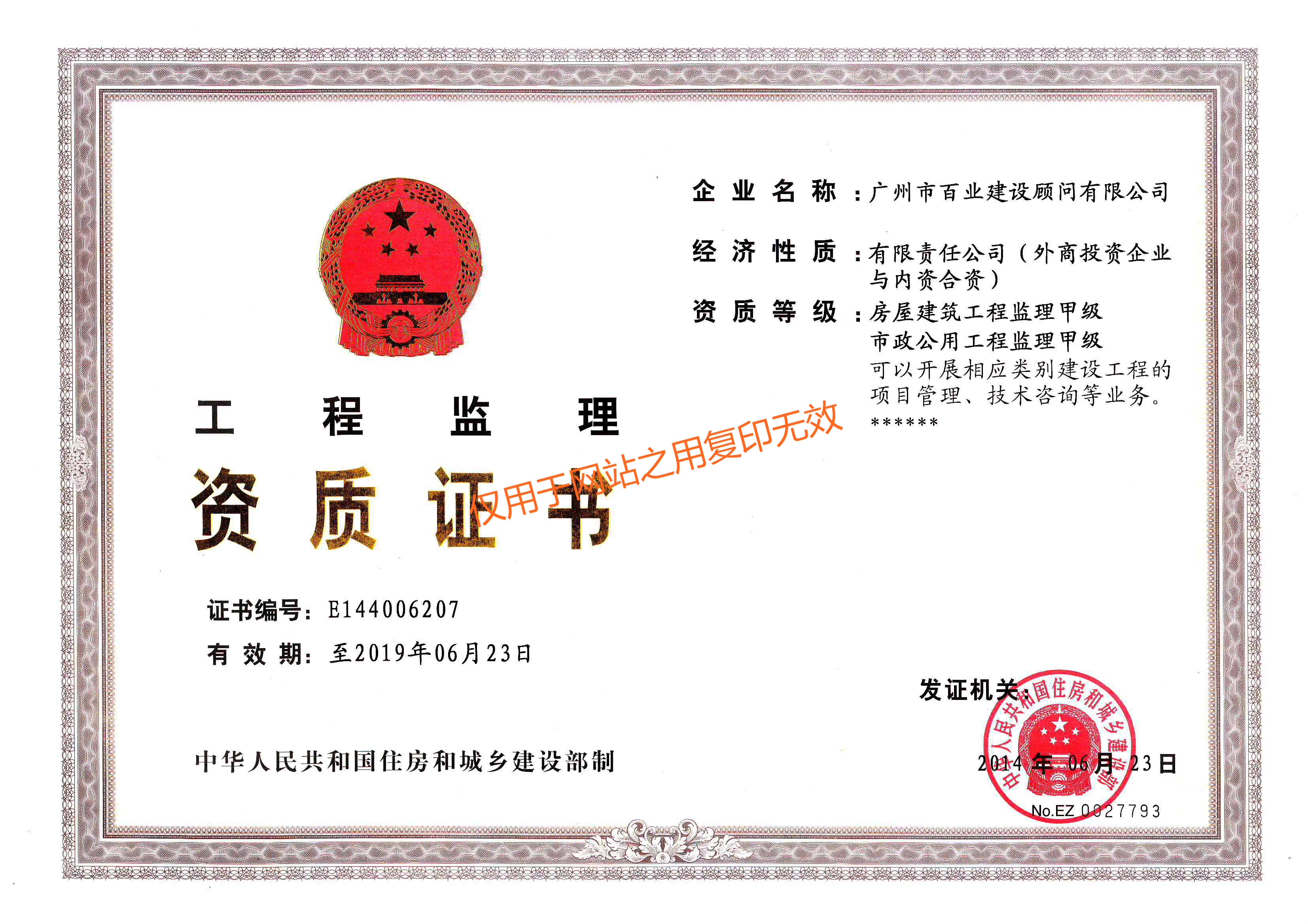 百业建设顾问有限公司是经国家建设部核准资质的建设工程专业型顾问公司,现具甲级工程监理,甲级招标代理及甲级造价咨询三甲资质。近年,本公司更获选为 "广东省工程造价协会第一届优秀会员单位"。