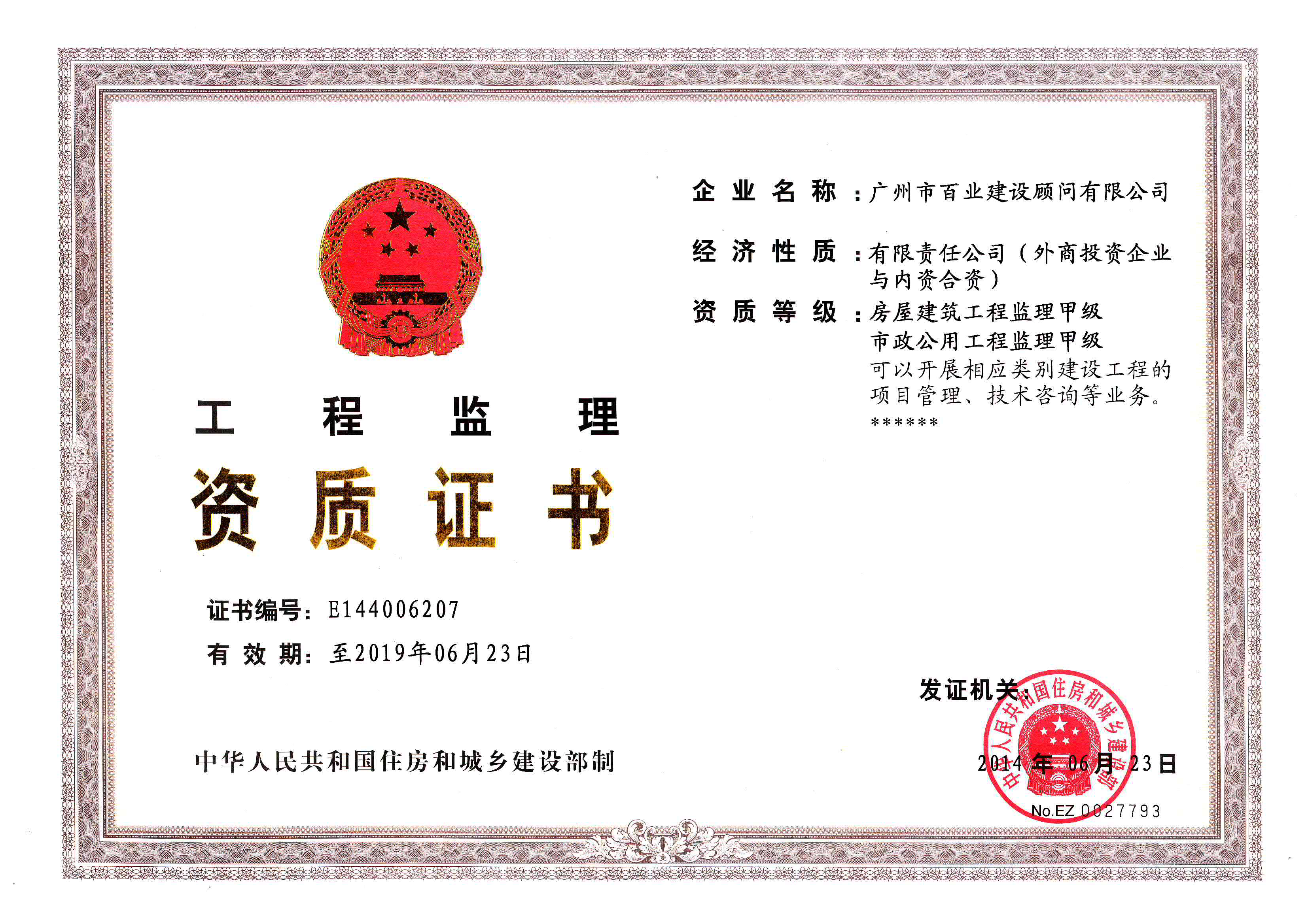 甲级资质证书 工程造价咨询单位甲级资质证书 |